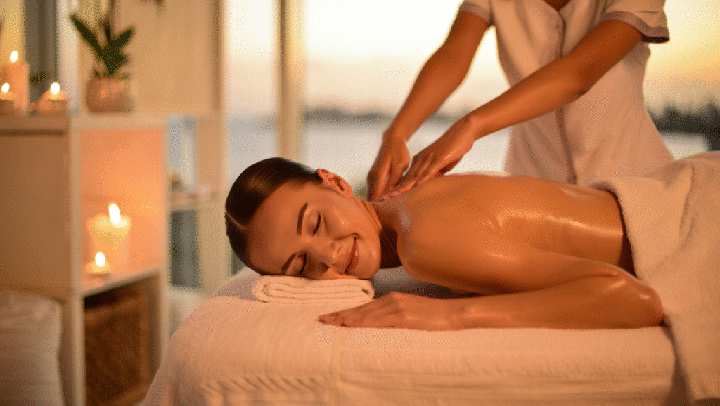 πΏ Nothing β our therapist brings everything: table, oils, linens, and music.